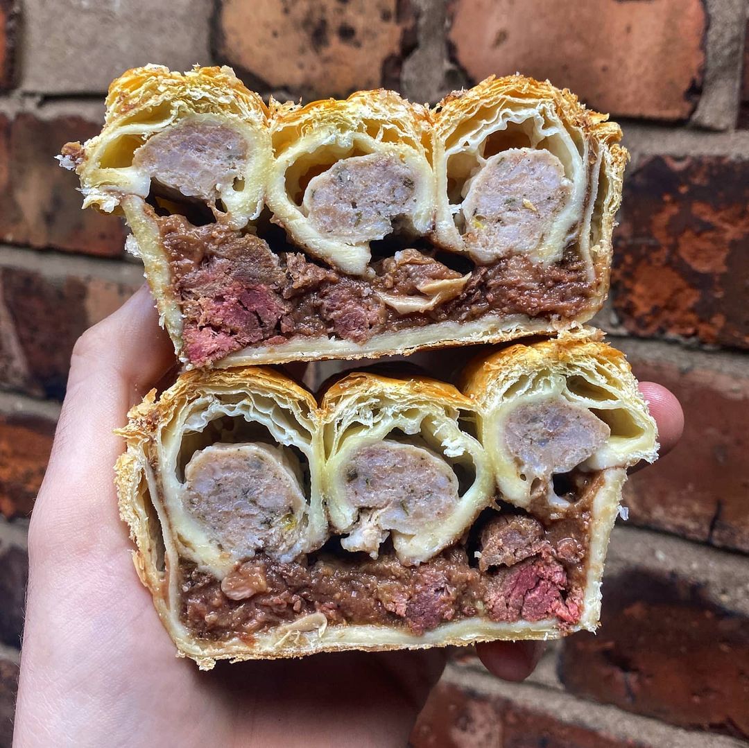 AN ODE TO GREGGS – a Steak Bake and Sausage Roll mash-up Super Pie
